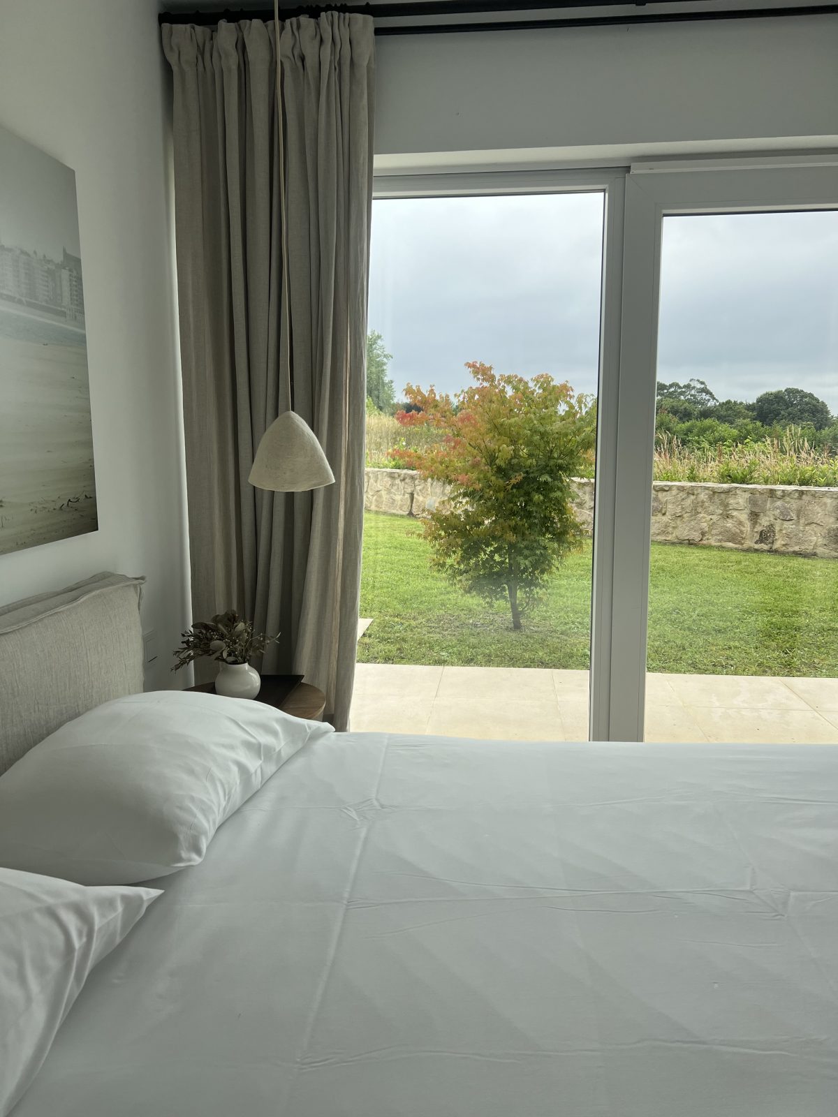 Dos dormitorios dobles y un salón con cocina, todos con grandes ventanales y salida directa al jardín, la convierten en la casa ideal para unas vacaciones en familia o con amigos.